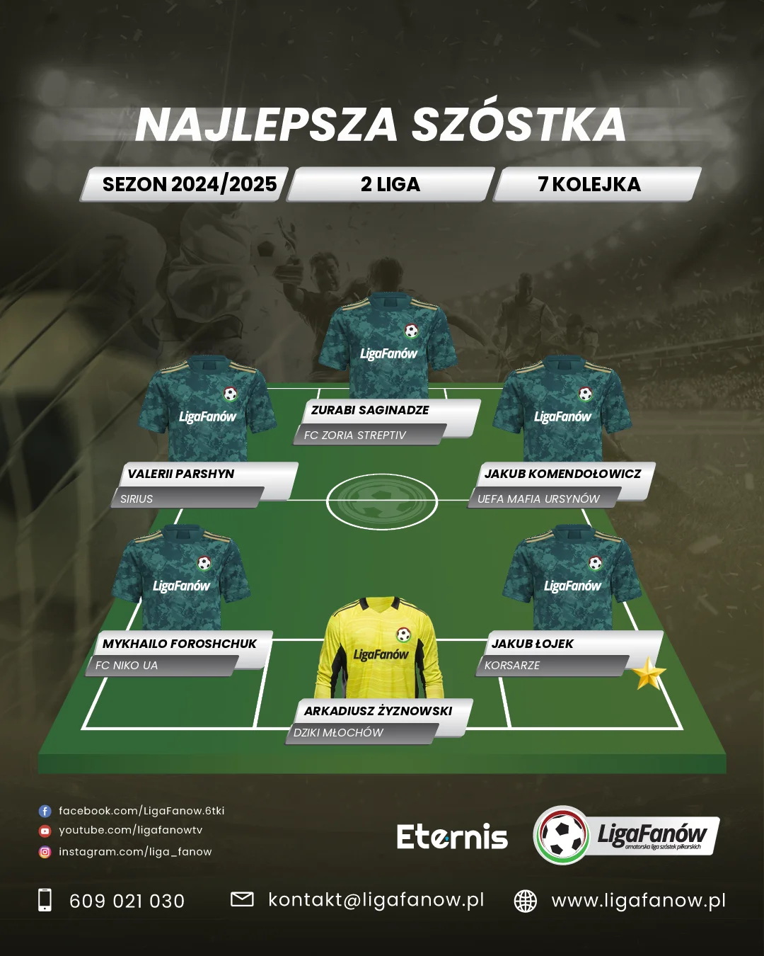 MVP 7. kolejki 2. ligi został wybrany Jakub Łojek z zespołu Korsarze, który poprowadził swoją drużynę do zwycięstwa 5:4 nad FC Zoria Streptiv. Już w 3. minucie Kuba rozpoczął strzelanie, zdobywając pierwszego gola meczu, co zwiastowało dobrą formę w wykonaniu tego zawodnika. Choć do przerwy Korsarze przegrywali 2:3, Kuba nieustannie walczył o zmianę losów spotkania, stając się kluczową postacią na boisku. Zawodnik ten wyróżnił się imponującą wszechstronnością – zdobył jednego z najważniejszych goli meczu, skutecznie wykańczając akcję, a dodatkowo zaliczył aż trzy asysty. Każde z jego precyzyjnych podań otwierało kolegom drogę do bramki, pokazując, jak doskonale rozumie taktykę i przestrzeń na boisku. Był motorem napędowym ofensywy Korsarzy, z łatwością znajdował się w odpowiednich miejscach, by stworzyć sytuacje bramkowe. Jego niezawodność i opanowanie sprawiły, że Korsarze, mimo trudnej pierwszej połowy, potrafili odwrócić losy meczu i sięgnąć po zwycięstwo. Dzięki umiejętnościom i zaangażowaniu tego gracza , drużyna odrobiła straty, a on sam pokazał, że potrafi zarówno strzelać, jak i budować akcje zespołowe na najwyższym poziomie. To właśnie dzięki tak wszechstronnej i efektywnej grze Jakub Łojek bezdyskusyjnie zasłużył na tytuł MVP kolejki.