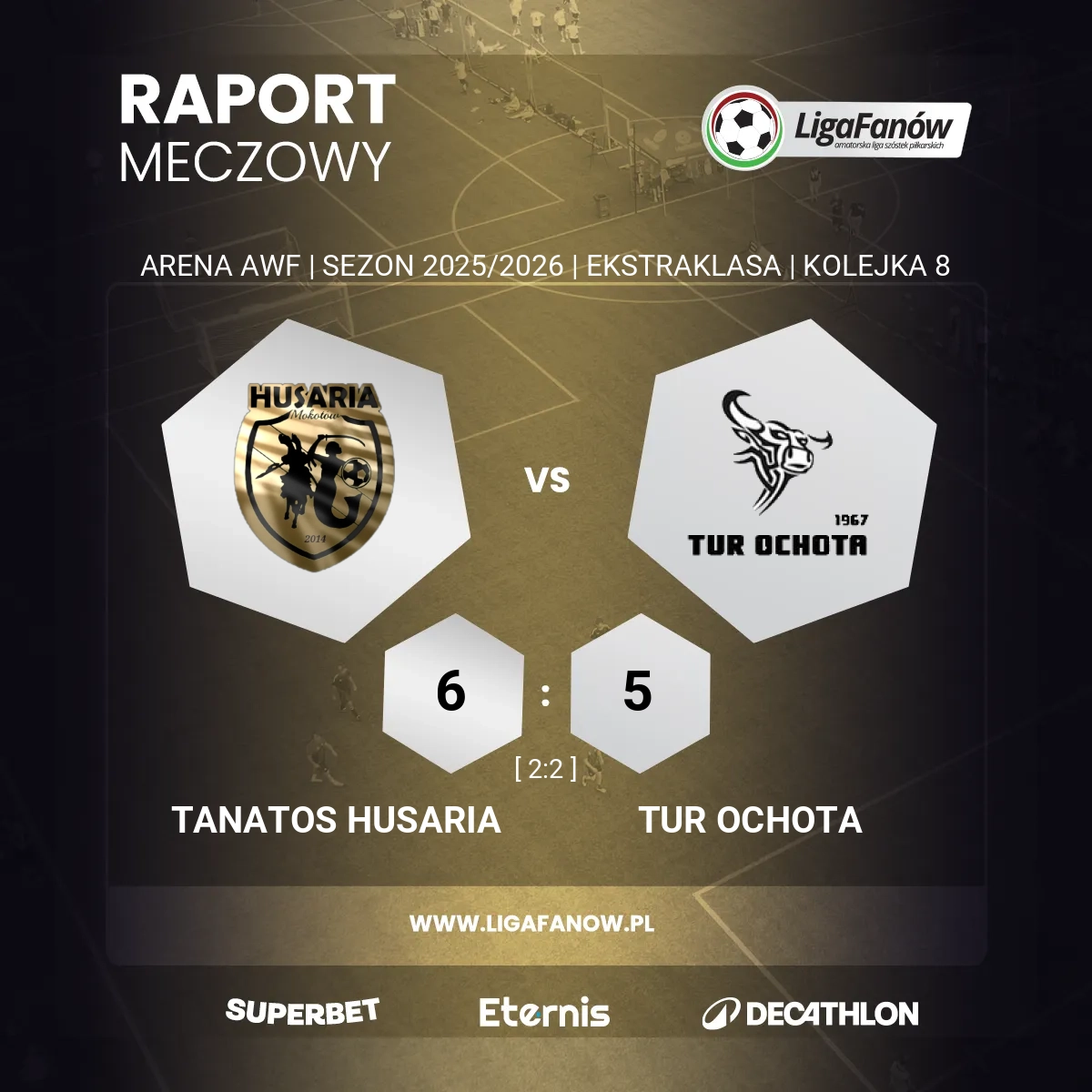Do końca spotkania obie drużyny walczyły łeb w łeb, wymieniając się golami. Ostatecznie lepiej z tego pojedynku wyszli zawodnicy Husarii, którzy utrzymali przewagę uzyskaną na kilka minut przed końcem. Toho miało swoje sytuacje, jednak niewykorzystane okazje w samej końcówce meczu oraz brak dokładności przy ostatnim podaniu odebrały im możliwość zdobycia choć jednego punktu. A naszym zdaniem z przebiegu gry naprawdę na niego zasłużyli swoją zespołową, zorganizowaną postawą.