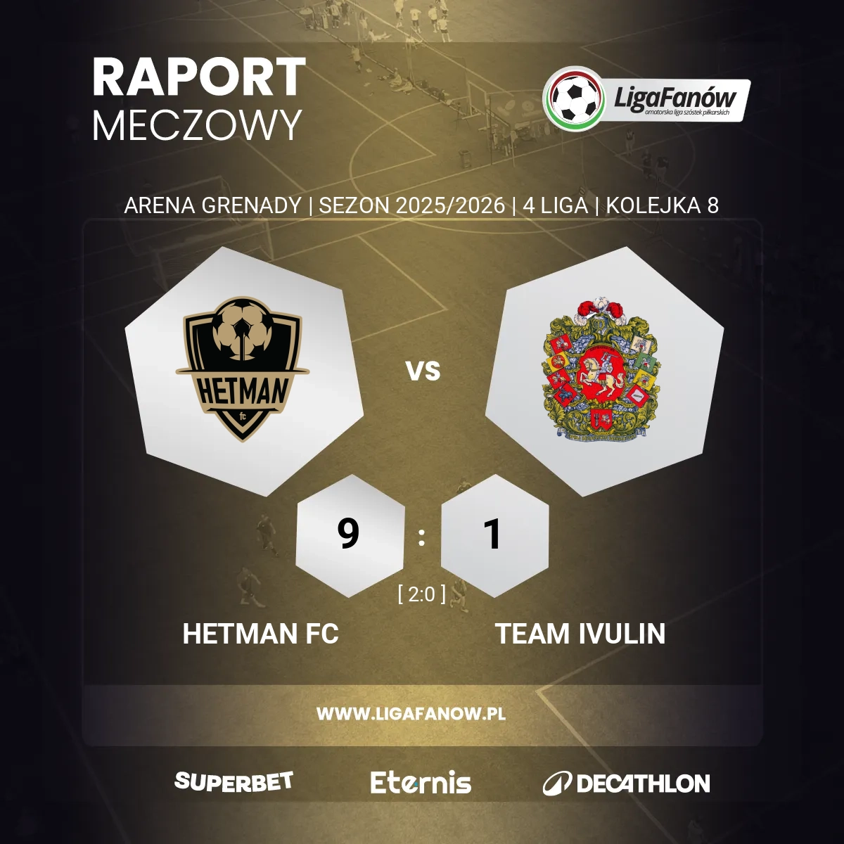 Hetman FC kontynuuje swój imponujący marsz przez sezon, a niedzielne spotkanie na Arenie Grenady tylko potwierdziło, że lider 4. ligi jest obecnie w znakomitej formie. Po drugiej stronie barykady znalazł się Team Ivulin - drużyna, która wciąż czeka na pierwsze ligowe punkty.
