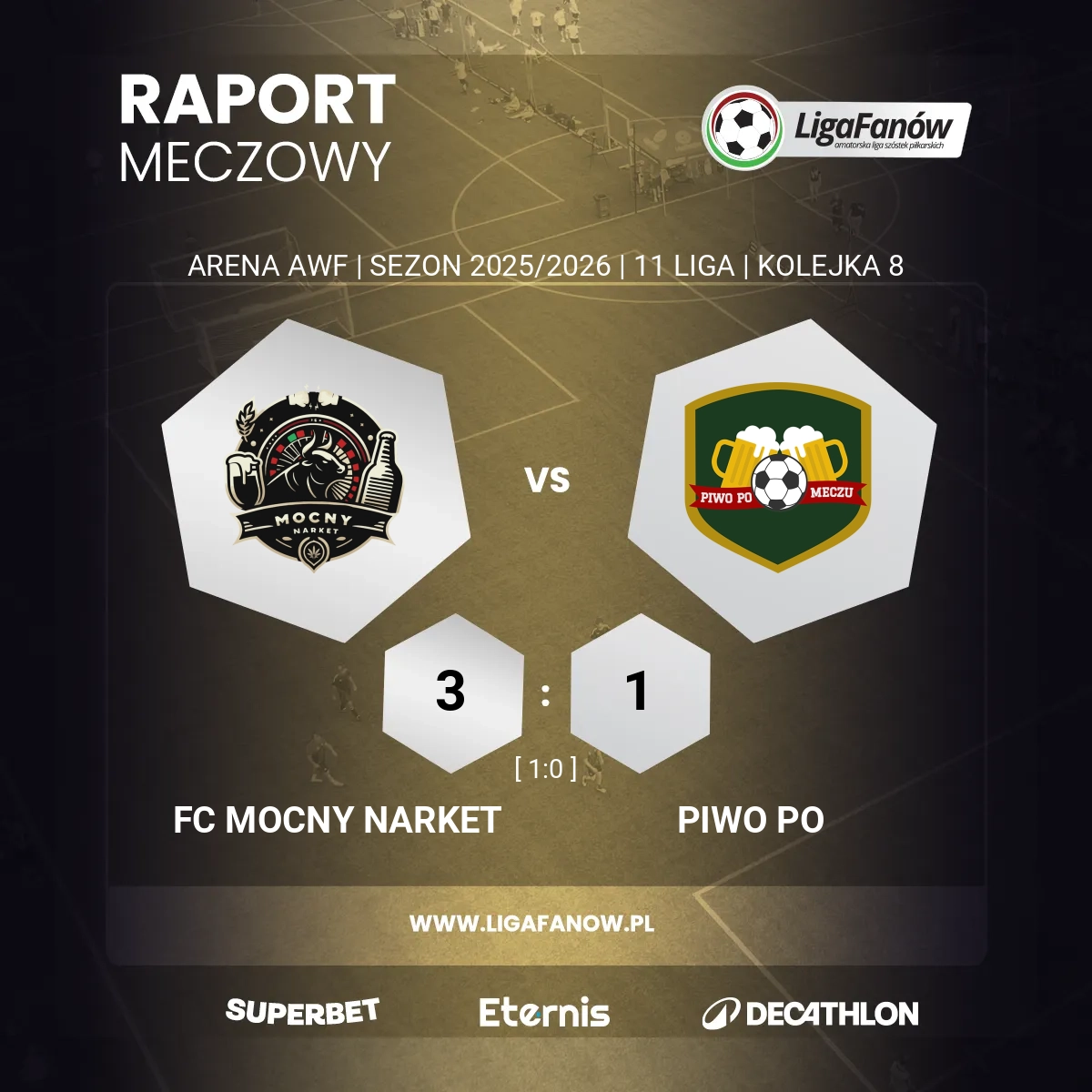Piwo Po Meczu stać było jedynie na honorowe trafienie w ostatniej minucie. Zbyt późno, by zagrozić wynikowi. Mocny Narket wygrał w pełni zasłużenie: spokojnie, dojrzale i z błyskiem, który zrobił różnicę.