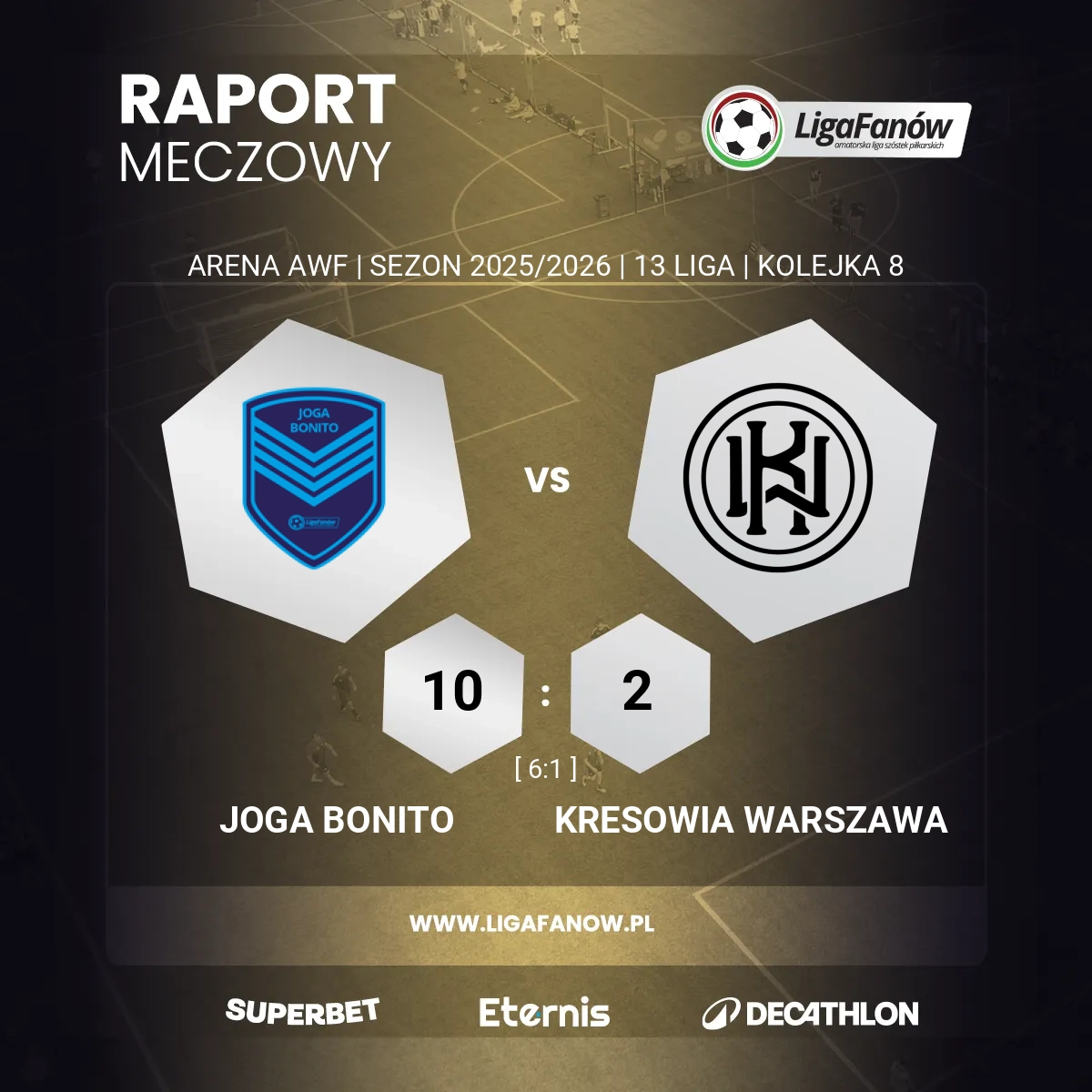 Absolutna dominacja! Wprawdzie spodziewaliśmy się, że po niechlubnej porażce z Nieuchwytnymi w ubiegłym tygodniu Joga Bonito będzie chciała pokazać się z możliwie najlepszej strony, ale na pewno nie przyszłoby nam do głowy, że aż tak wyraźnie zdominuje zajmującą trzecią lokatę Kresowię II.
