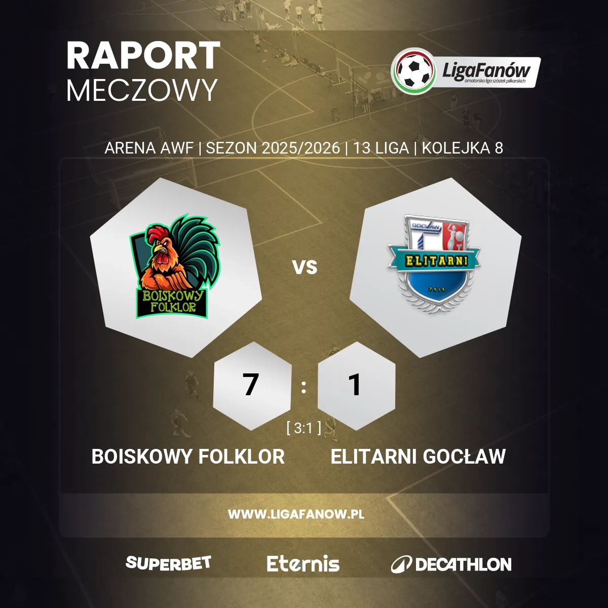 Ostatecznie Boiskowy Folklor umocnił swoją pozycję i wszystko wskazuje na to, że czeka nas bezpośrednia walka z Joga Bonito o pierwsze miejsce. Elitarni pozostają na czwartej lokacie, a teraz przed nimi decydujący mecz o TOP 3 w ostatniej kolejce. Z pewnością będą chcieli zakończyć rundę w dobrym nastroju i utrzymać się w grze o brąz.