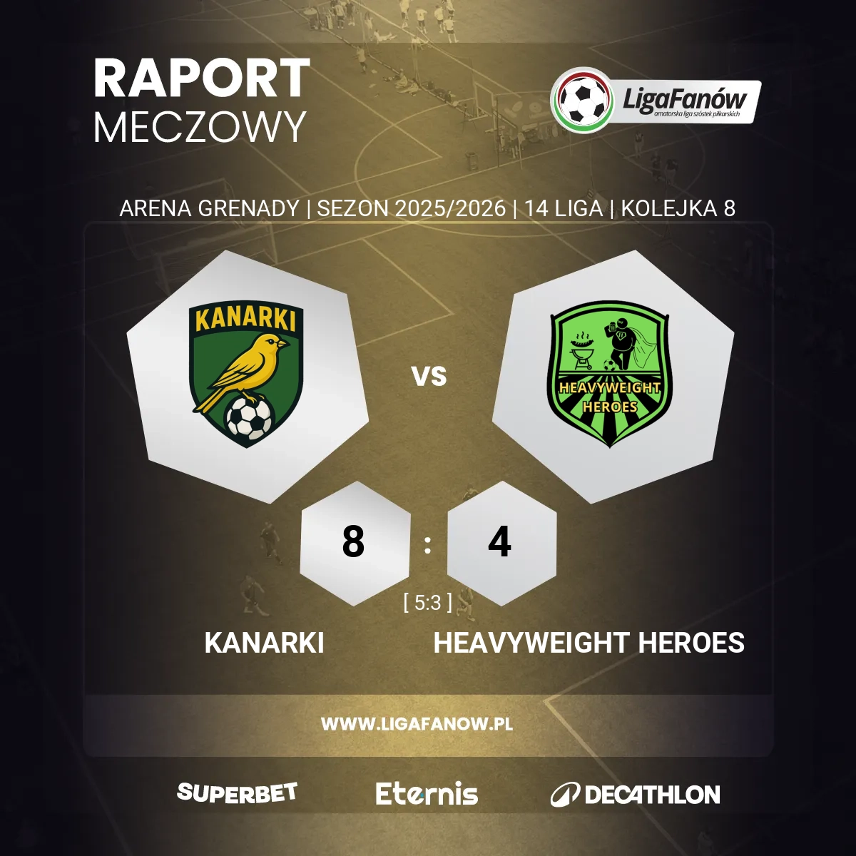 Końcowy wynik 8:4 pokazuje różnicę, jaka pojawiła się w drugiej połowie: Kanarki były świeższe, bardziej zdyscyplinowane i miały zawodnika, który zrobił różnicę. Heavyweight Heroes walczyli, ale tym razem musieli uznać wyższość lepszej i bardziej konsekwentnej ekipy.