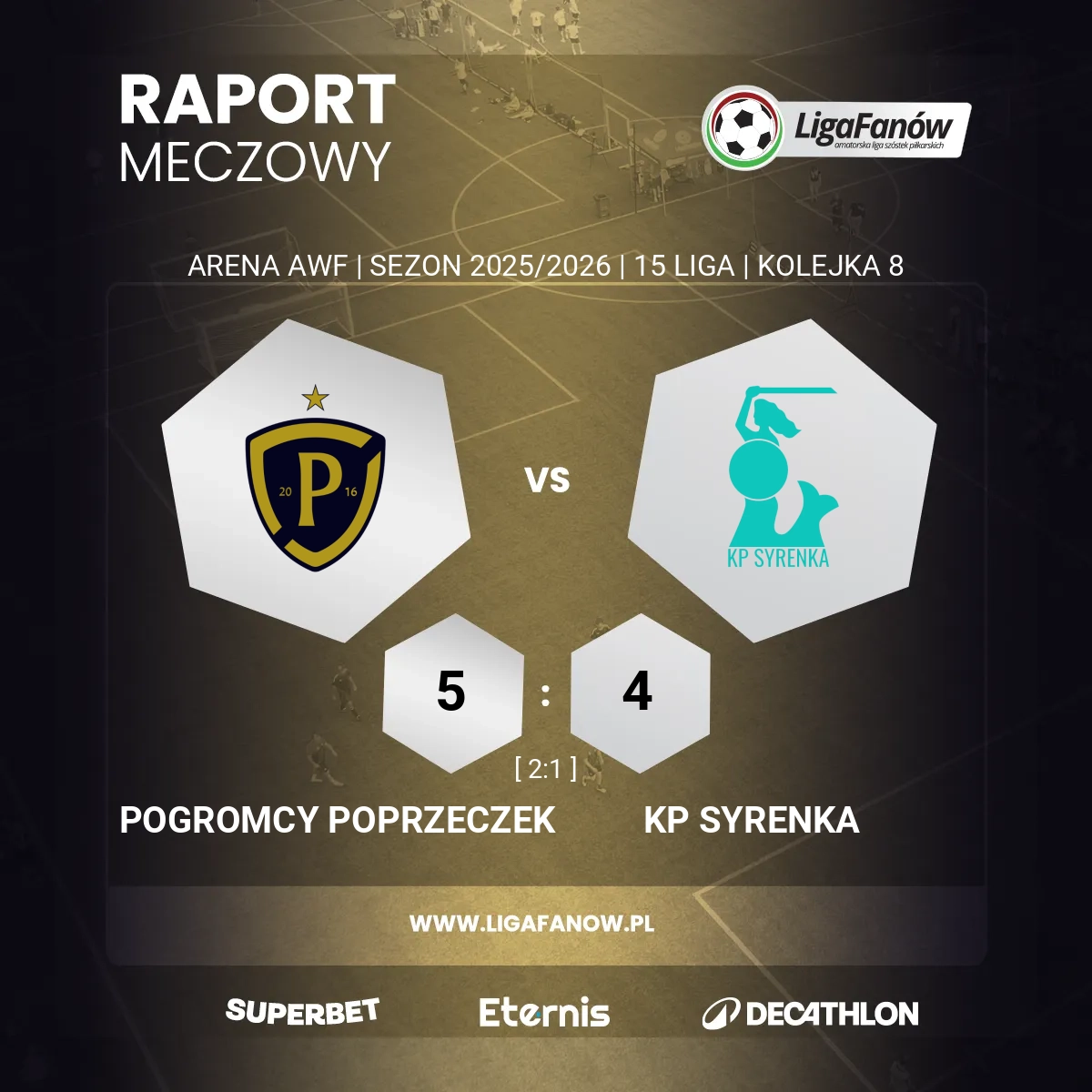 Rezultat 5:4 zapewnił Pogromcom Poprzeczek umocnienie swojej pozycji w ścisłej czołówce tabeli, która robi się coraz bardziej napięta - między podium a szóstym miejscem są zaledwie dwa punkty różnicy. KP Syrenka natomiast może jedynie pluć sobie w brodę po tak łatwo wypuszczonym zwycięstwie. Ich gra jednak napawa optymizmem, a motor napędowy zespołu, Maksymilian Pająk, z pewnością zdobędzie jeszcze wiele bramek w biało-niebieskich barwach.