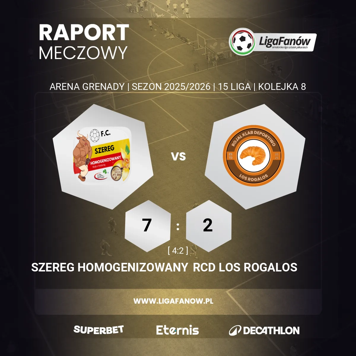 Choć do końca meczu zostało sporo czasu, gospodarze nie forsowali już tempa i kontrolując przebieg gry dowieźli korzystny wynik. Dzięki temu zwycięstwu Szereg wrócił do rywalizacji o podium i przy odrobinie szczęścia ma szansę przezimować na trzecim miejscu. W przypadku Los Rogalos sytuacja wygląda gorzej, ale widać, że ekipa pomarańczowych zaczyna łapać ligowego bluesa, choć do solidnej formy jeszcze trochę brakuje, Rogale stają się coraz bardziej niewygodnym przeciwnikiem i mogą sporo namieszać na wiosnę.